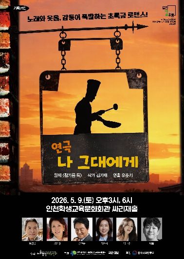 (포탈뉴스통신) 인천광역시교육청학생교육문화회관은 5월 9일 대공연장 싸리재홀에서, 중년 부부와 가족의 애환을 그린 기획공연 ‘나 그대에게’를 개최한다.