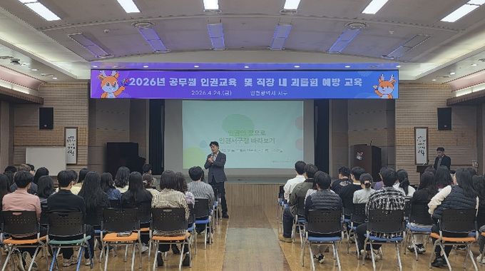 (포탈뉴스통신) 인천 서구는 지난 24일 총 2회에 걸쳐 서구청 전 직원을 대상으로 ‘2026년 인권교육 및 직장 내 괴롭힘 예방교육’을 실시했다고 밝혔다.
