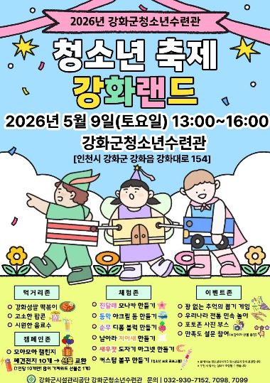 (포탈뉴스통신) 강화군청소년수련관이 오는 9일, 5월 ‘청소년의 달’을 맞아 청소년과 지역 주민이 함께 즐길 수 있는 청소년 축제 '강화랜드'를 개최한다.