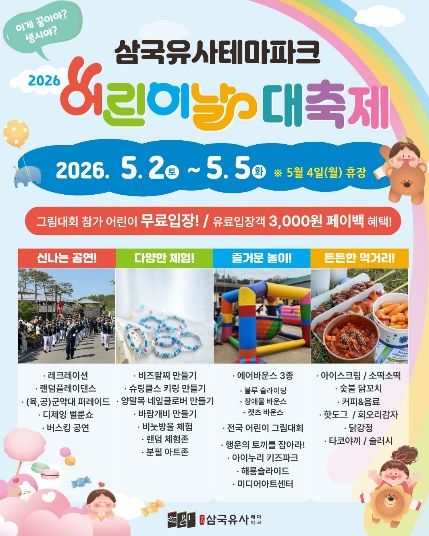 (포탈뉴스통신) 군위문화관광재단이 다가오는‘2026 어린이날 대축제’를 더욱 알차게 즐길 수 있는 상세 일정과 장소별 프로그램을 전격 공개했다.