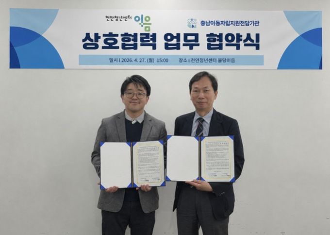 (포탈뉴스통신) 천안시는 천안청년센터 이음이 27일 충남아동자립지원전담기관과 ‘취약계층 청년 발굴 및 통합 지원을 위한 업무협약’을 체결했다고 밝혔다.