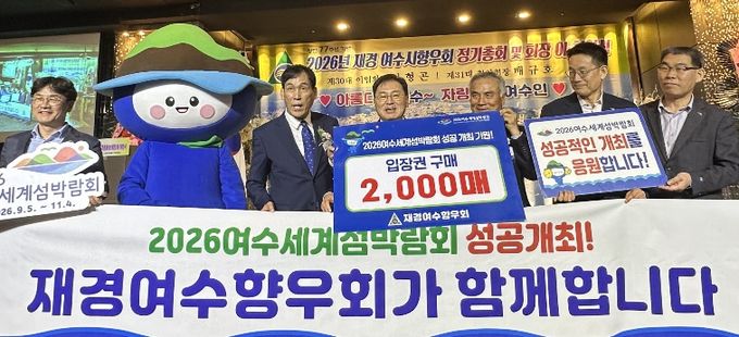 (포탈뉴스통신) (재)2026여수세계섬박람회조직위원회는 지난 26일 재경여수향우회 회장 이취임식에서 향우회와 2,200만 원 상당의 입장권 구매약정을 체결했다.