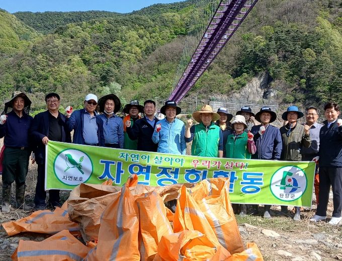 이날 환경정화 활동에는 단양군 지질관광협의회, 단양군 농촌신활력플러스사업 추진단, 단양군 지역자율방재단이 함께 참여해 시루섬 주변에 방치된 쓰레기와 부유물을 수거하며 청정한 생태환경 조성에 힘을 보탰다.