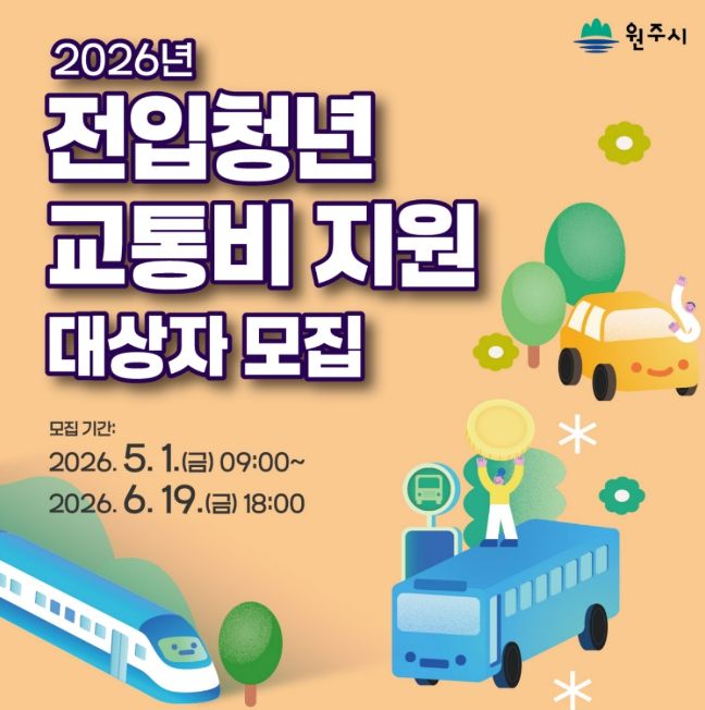 (포탈뉴스통신) 원주시는 청년층의 전입과 안정적인 정착을 지원하기 위해 2023년 이후 원주시로 전입하고, 관외 직장으로 출퇴근하는 18∼39세 청년들을 대상으로 최대 120만 원의 교통비를 지원한다.