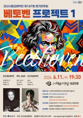 (포탈뉴스통신) 군산시립교향악단이 오는 6월 11일 오후 7시 30분, 군산예술의전당 대공연장에서 제167회 정기연주회 ‘베토벤 프로젝트 I’를 개최한다.