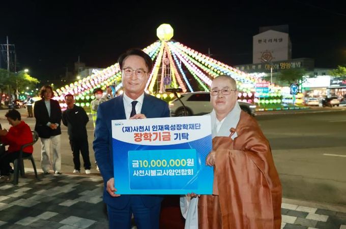 이번 기탁은 부처님 오신 날을 기념해 온 세상에 지혜의 등불을 밝히듯, 사천의 미래를 이끌어갈 학생들에게 희망의 빛을 전하고자 마련됐다.