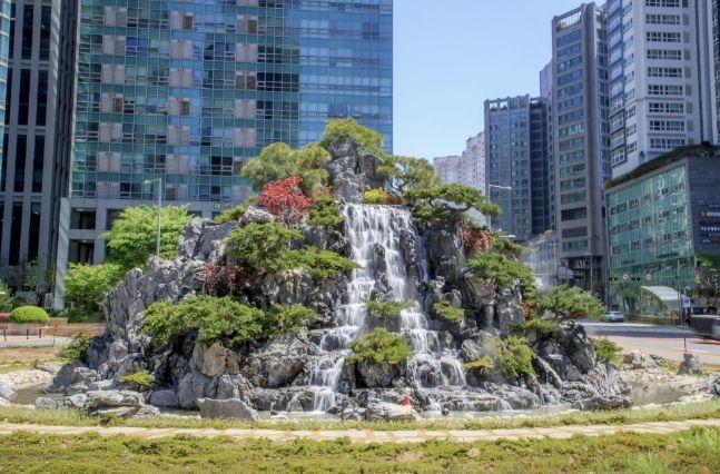 총 1,685㎡ 규모의 교통섬에는 폭포와 연못을 포함한 수경시설이 새롭게 들어섰으며, 차량 통행이 잦은 교차로에 자연 요소를 더해 삭막했던 공간을 생기 있는 녹색 경관으로 바꾸는 데 의미를 담았다.