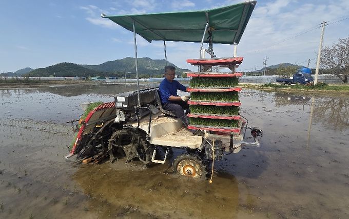 상주시 모서면 도안리 일원에서 실시한 첫 모내기 품종은 ‘미소진품’이다.