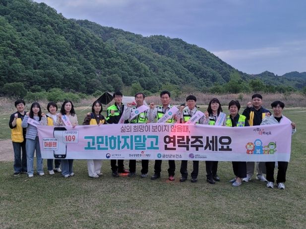 이번 캠페인은 3월부터 5월까지 이어지는 자살 고위험 시기를 맞아 집중 홍보의 일환으로 추진됐으며 ‘힘들면 함께 나눠요, 당신 곁엔 109’를 주제로 금산군민의자살예방 인식 확산을 위해 추진됐다.
