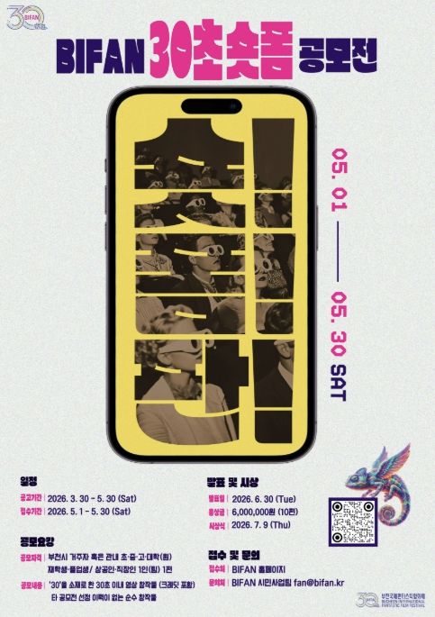 (포탈뉴스통신) 부천시는 부천국제판타스틱영화제(BIFAN)와 함께 ‘숏! 폼! 판! BIFAN 30초 숏폼 공모전’을 열고, 제30회를 맞은 영화제를 기념해 시민 참여형 프로그램을 운영한다.