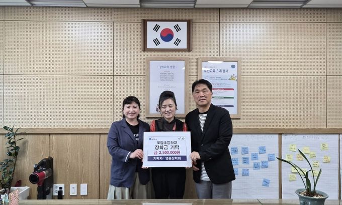 (포탈뉴스통신) 포천시 영중면 영중장학회는 지난 27일 지역 인재 양성을 위해 포담초등학교와 영중중학교를 방문해 장학금을 전달했다.
