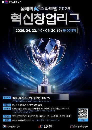 (포탈뉴스통신) (재)충남창조경제혁신센터는 오는 5월 20일 16시까지 우수한 기술력과 사업모델을 보유한 창업기업을 대상으로 ‘올해의 K-스타트업 2026’ 혁신창업리그(예선) 참가자를 모집한다고 밝혔다.