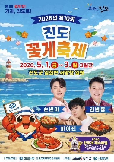 (포탈뉴스통신) 진도군은 봄 꽃게의 제철을 맞아 5월 1일부터 3일까지 3일간 임회면 서망항 일원에서 ‘제10회 진도 꽃게 축제’를 개최한다.