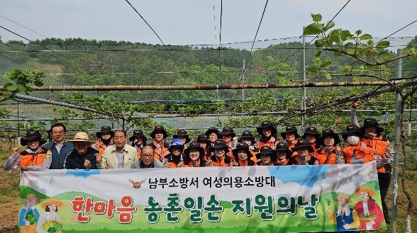 이날 여성의용소방대원 30여 명이 참여해 키위 생육에 중요한 새순누르기 작업을 중심으로 농작업을 도우며 부족한 일손 해소에 나선다.