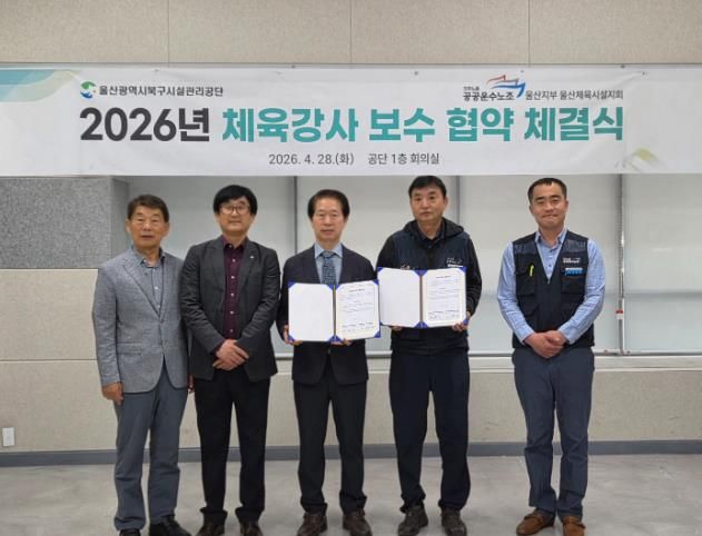 (포탈뉴스통신) 울산광역시북구시설관리공단과 전국공공운수사회서비스노동조합 울산지부 울산체육시설지회는 28일 공단 1층 회의실에서 체육강사들의 처우 개선과 상생 협력을 위한 ‘2026년 체육강사 보수 협약 체결식’을 개최했다,