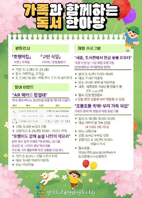 5월 한 달간 열리는 이번 행사는 과천도서관의 독서진흥 특화 브랜드인 ‘아이두(IDO) 상상온(ON)’의 일환으로 기획됐으며 어린이의 상상력과 온 가족의 문해력 성장을 경험할 수 있도록 구성했다.