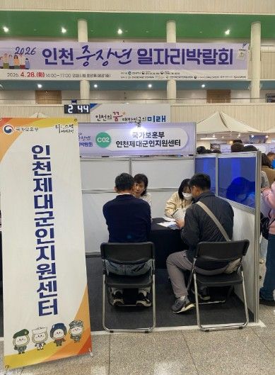 (포탈뉴스통신) 국가보훈부 인천보훈지청 제대군인지원센터는 2026. 4. 28.에 인천광역시 주최로 개최된 ‘2026 인천 중장년 일자리박람회’에 협업기관으로 참여하여 중장년 제대군인의 효율적인 취업지원을 위한 구인구직 행사를 진행했다.