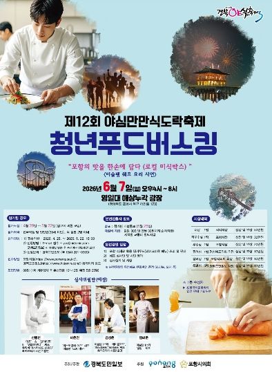 (포탈뉴스통신) 포항시는 제12회 야심만만 식도락축제의 ‘전국 청년푸드버스킹 요리경연대회’ 참가자를 모집한다.