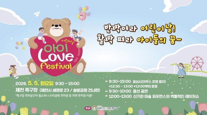 이번 행사는 오전 9시 30분부터 오후 3시까지 제천족구장에서 열리며, 어린이와 가족이 함께 즐길 수 있도록 기념식과 공연, 체험활동 등 다양한 프로그램이 진행될 예정이다.