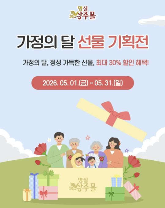 이번 ‘가정의 달’ 선물 기획전은 상주의 우수 농특산물 선물세트를 최대 30% 할인된 가격에 만나볼 수 있으며, 특히 매주 수요일에는(6일, 13일, 20일, 27일) 수요특가 ‘수상하데이’이벤트를 통해 매회 4개 품목을 최대 50% 특별가로 제공해 농특산물을 저렴하게 구매할 좋은 기회가 될 것으로 보인다.
