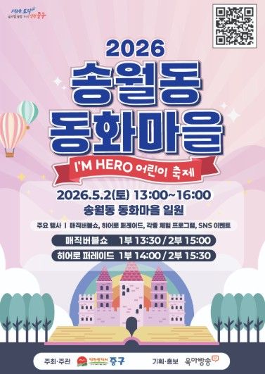 (포탈뉴스통신) 인천시 중구는 어린이날을 맞아 오는 5월 2일 ‘2026년 송월동 동화마을 어린이 축제’를 개최한다고 밝혔다.
