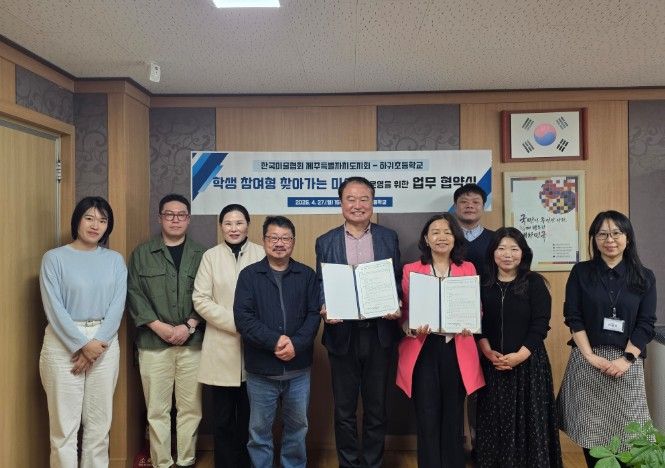 (포탈뉴스통신) 제주도교육청 하귀초등학교는 27일 한국미술협회 제주특별자치도지회와 ‘학생 참여형 찾아가는 미술관’ 운영을 위한 업무협약(MOU)을 체결했다.