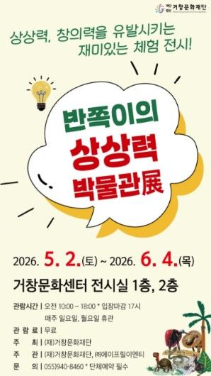 (포탈뉴스통신) (재)거창문화재단은 가정의 달을 맞이해 오는 5월 2일부터 6월 4일까지 거창문화센터 전시실에서 2026년 기획전시 '반쪽이의 상상력 박물관展'을 개최한다.
