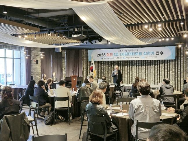 (포탈뉴스통신) 이천교육지원청은 4월 29일부터 30일까지 1박 2일간 에덴파라다이스호텔에서 관내 소속 모든 교(원)감을 대상으로 ‘2026 이천 1교 1서희대화모임 실천가 역량 강화 연수’를 운영한다.