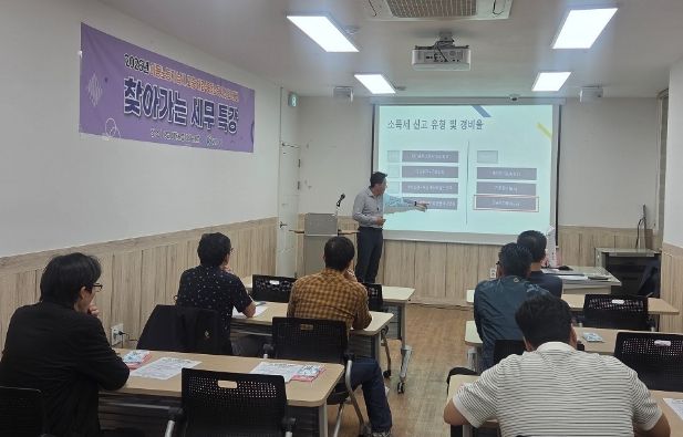 이날 특강은 5월 종합소득세 신고를 대비하여 대리운전기사, 택배기사, 퀵서비스 종사자 등 관내 이동노동자를 대상으로 진행됐으며, 노동자의 직업군별 선호 시간대를 고려하여 총 두 차례로 나뉘어 실시됐다.