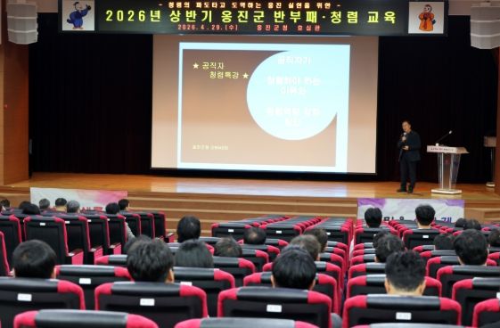 (포탈뉴스통신) 옹진군은 지난 29일 군청 효심관에서 전 직원을 대상으로 공직윤리 의식 고취를 위한 ‘2026년 상반기 공직자 반부패·청렴 교육’을 실시했다고 밝혔다.