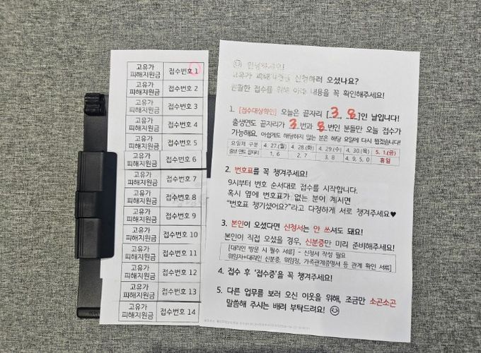오학동은 최근 ‘고유가 피해지원금’ 신청이 시작됨에 따라, 업무 개시 전부터 대기하는 주민들을 위해 대기 공간에 배려가 담긴 안내 편지를 비치했다.