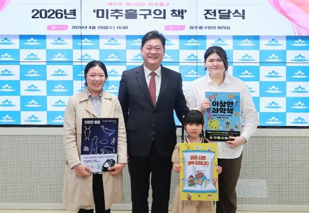 (포탈뉴스통신) 인천 미추홀구는 29일 구청 구청장실에서 ‘한 도시 한 책 독서 릴레이’ 첫 주자에게 2026년 ‘미추홀구의 책’ 전달식을 완료했다.