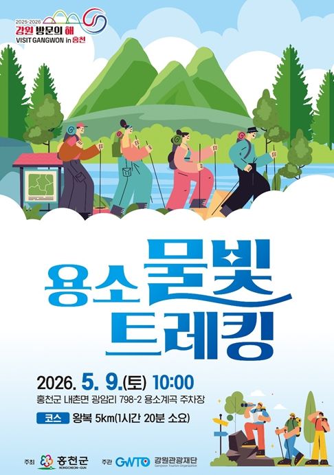 (포탈뉴스통신) 강원관광재단은 홍천군과 함께 오는 5월 9일 오전 10시 홍천군 내촌면 용소계곡 일원(광암리 798-2)에서 ‘용소 물빛 트레킹’ 행사를 개최한다고 밝혔다.