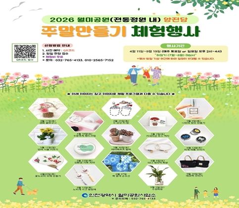 (포탈뉴스통신) 인천광역시 월미공원사업소는 오는 9월 20일까지 월미공원 내 전통정원 양진당에서 ‘주말 만들기 체험 행사’를 운영한다고 밝혔다.