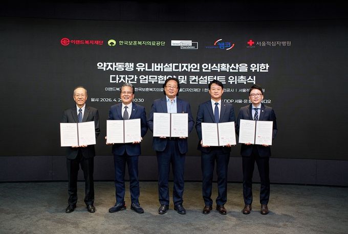 (포탈뉴스통신) 서울디자인재단은 4월29일 DDP(동대문디자인플라자)에서 한국자산관리공사, 한국보훈복지의료공단, 서울적십자병원, 이랜드복지재단과 함께 ‘약자동행 유니버설디자인 인식확산’을 위한 다자간 업무협약을 체결했다.