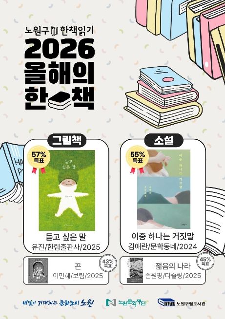오승록 노원구청장은 “독서문화 진흥에는 주민의 참여, 지역의 노력이 모두 중요하기에 도서관을 비롯한 구정 각 분야의 역량을 융합하고자 한다”며 “올해의 한 책을 통해 책 읽는 즐거움을 지역 곳곳으로 확산하고, 세대와 이웃을 잇는 독서문화를 만들어가겠다”고 말했다.
