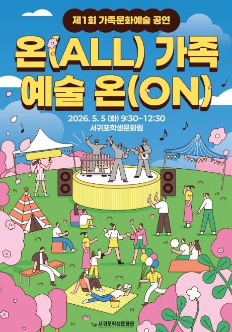(포탈뉴스통신) 제주도교육청 서귀포학생문화원은 5월 5일 어린이날을 맞아 가족 공동체의 소통과 연대를 강화하고 지역주민의 문화예술 향유 기회를 확대하기 위해 ‘제1회 가족문화예술 공연: 온(ALL) 가족 예술 온(ON)’을 개최한다고 밝혔다.