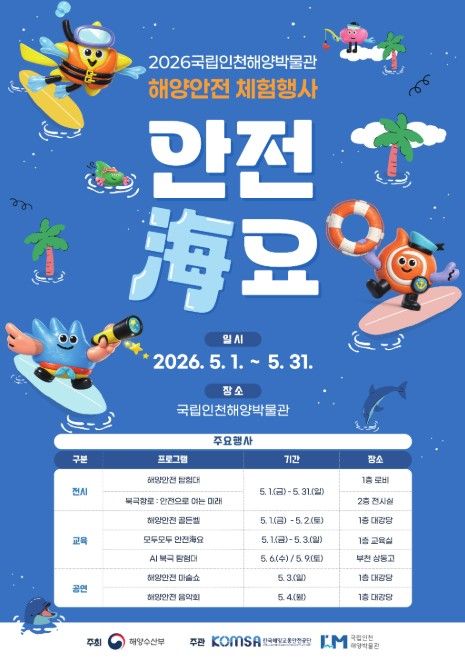 이 외에 ‘해양안전 마술쇼’, ‘해양안전 음악회’ 등 가족이 함께 즐길 수 있는 프로그램들도 진행된다. 이번 행사와 관련된 자세한 내용과 참여 방법은 국립인천해양박물관 누리집에서 확인할 수 있다.