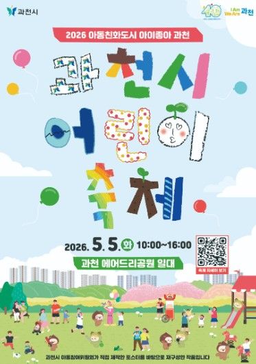 (포탈뉴스통신) 과천시는 다가오는 5월 5일 제104회 어린이날을 맞아 어린이와 가족이 함께 참여하는 ‘2026년 과천 어린이 축제’를 과천에어드리공원 일대에서 개최한다고 밝혔다.
