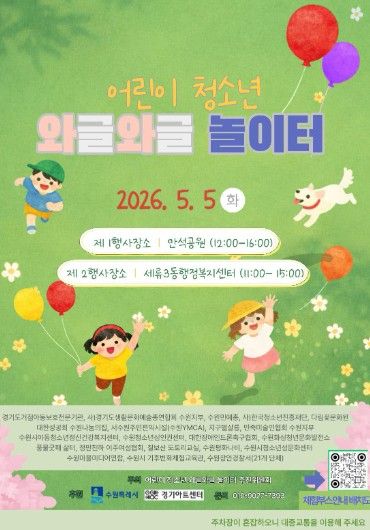 이번 행사는 어린이·청소년 와글와글 놀이터 추진위원회가 주최·주관하고 수원특례시와 경기아트센터가 후원한다.