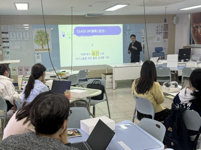 CLASS UP 프로그램은 경기도교육청이 자체 개발한 AI 기반 영어 의사소통 중심 수업 및 평가 모델로, 학생 맞춤형 수업·평가 자료 제공과 실시간 피드백이 가능하다. 또한 학생들은 수업에서 학습한 내용을 바탕으로 자기 주도적 학습을 이어갈 수 있다.