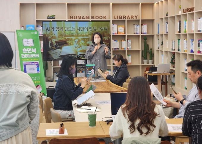 강의는 ▲김민정 휴먼북의 ‘AI로 만드는 그림책’ ▲김채린 휴먼북의 ‘꽃차 소믈리에’ ▲이선미 휴먼북의 ‘AI 윤리’ ▲홍지현 휴먼북의 ‘산티아고 순례길’ ▲이민희·백정우 휴먼북의 ‘감성 캘리향수’ 등이 5개 주제로 진행됐다.