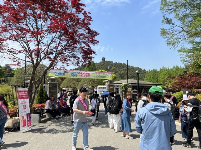 이번 홍보는 청남대 영춘제를 찾은 전국의 상춘객을 대상으로 ‘2026 오송화장품뷰티엑스포’의 대외 인지도를 높이고 성공적인 행사 개최 분위기 조성을 위해 마련됐다.