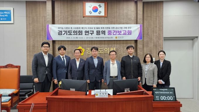 (포탈뉴스통신) 경기도의회 기획재정위원회 소속 의원 연구단체인 기획재정연구회(회장 조성환, 기획재정위원장)는 30일 오후 경기도의회 기획재정위원회 회의실에서 '경기도 다문화 등 사회통합 예산의 구조화 및 활용 체계 마련을 위한 관리기반 구축 연구'에 관한 연구용역 중간보고회를 개최했다.