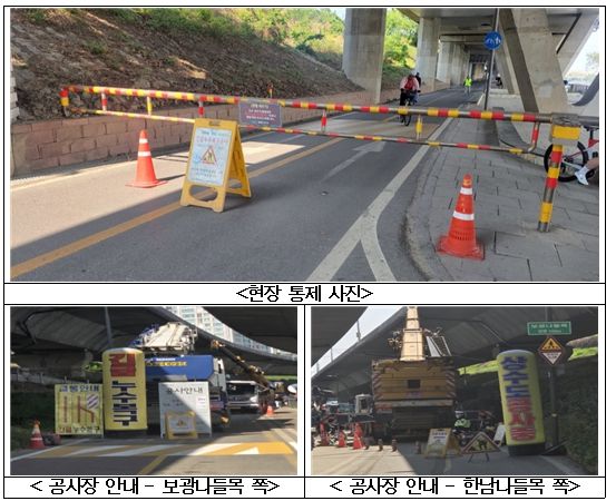 누수복구 공사로 인하여 한강자전거길 반포대교 북단~한남나들목 약 1.85㎞ 구간이 안전을 위해 자전거 이용자 및 시민 통행을 통제하고 있으며, 복구 완료 예상 시간은 5월 2일(토) 24:00로 통제 관련 자세한 사항은 120다산콜센터를 통해 안내받을 수 있다.