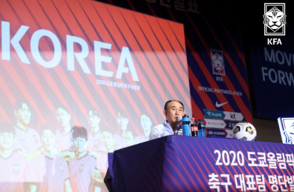 김 감독은 30일 광화문 KT스퀘어 드림홀에서 열린 기자회견에서 올림픽 대표팀 최종명단을 발표했다. 지난 22일 파주NFC에 소집돼 훈련 중이던 23명의 선수 중 15명이 김 감독의 선택을 받았으며, 만 25세 이상 선수로 구성된 3명의 와일드카드(황의조, 권창훈, 김민재)가 합류했다.