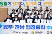 (포탈뉴스통신) 전라남도는 16일 전남도청 왕인실에서 ‘2026년 도-시군 상생협력 간담회’를 열어 지역 대도약을 위한 광주·전남 행정통합 추진에 도와 22개 시군이 공동 보조를 맞추기로 했다. 간담회는 김영록 전남도지사와 22개 시장·군수 등 관계자 100여 명이 참석한 가운데, 광주·전남 행정통합 추진계획과 전남도 재생에너지 추진전략을 중심으로 발표와 토론이 진행됐다. 이들은 광주·전남 행정통합을 통해 대한민국 제1호 통합 광역지방정부 출범을 목표로, 도와 시군이 상생 협력 의지를 재확인하고, 전남의 미래 성장 전략을 논의했다. 특히 특별법 제정안을 중심으로 행정통합 추진 경과와 향후 일정을 공유하고, 전남을 대한민국 첨단산업을 이끄는 ‘재생에너지의 심장’으로 육성하기 위한 시군의 협력 방향과 역할 분담에 공감대를 형성했다. 김영록 지사와 전남시장군수협의회는 광주·전남 행정통합 환영 성명서를 발표하고, 초광역 경제 중심지 도약을 위한 행정 통합에 적극 협력할 뜻을 밝혔다. 또한 22개 시군의 고유한 특성과 자율성이 존중되는 균형발전형 통합과 민주적 합의, 도민 공감대 형성에 책임 있