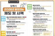 (포탈뉴스통신) 김해시는 16일 2026년 새해 달라지는 6개 분야 59개 제도와 시책을 안내했다. 신규 20건, 확대 39건으로 인구 구조 변화에 선제적으로 대응하고 민생경제 활력을 높이며 촘촘한 복지 그물망을 구축하는 데 방점을 뒀다. [인구·청년 ] 출생부터 자립까지, 김해형 생애주기 지원 강화 먼저 임신·출산·육아·돌봄부터 청소년·청년 지원 정책까지 시민 누구나 한눈에 확인하고 신청할 수 있는 인구정책 종합정보 플랫폼 ‘김해아이가(家)’가 지난 5일부터 운영에 들어갔다. 가구 상황과 관심 주제 등 수요자 맞춤 설정으로 개인별로 필요한 정책 정보를 직관적으로 제공한다. 이와 함께 청년의 자립 기반 마련을 위해 미취업 청년 운전면허 취득 비용 지원 연령을 기존 18세부터 39세까지에서 45세까지로 확대했다. 오는 6월까지 진영빛어울림센터 내에 청년 수요를 반영한 특화 공간 ‘김해청년센터 Station-G 진영’을 조성한다. 혼인 및 출산 장려 분위기 확산을 위해 2026년 혼인신고 부부에게 부부 머그컵 세트를, 2026년 출생신고 아기에게 아기 목욕 타월을