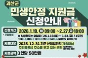 (포탈뉴스통신) 충북 괴산군은 지역경제 회복과 군민 생활 안정을 위해 추진하는 ‘괴산군 민생안정지원금’ 신청·접수를 오는 19일부터 2월 27일까지 실시한다고 밝혔다. 민생안정지원금은 2025년 12월 31일 기준일부터 현재까지 괴산군에 주민등록이 돼 있는 군민을 대상으로 1인당 50만 원을 지급하는 정책으로 신청은 주소지 읍·면사무소를 방문해 신청하면 된다. 2007년 12월 31일 이전 출생자는 개인별 신청·지급이 원칙이며 2008년 1월 1일 이후 출생한 미성년자는 동일 주소지 내 세대주가 신청해 지급받는다. 군은 신청 초기 혼잡을 최소화하기 위해 신청 개시 첫 주에는 출생년도 끝자리 기준 요일제를 운영한다. ▲월요일(1·6) ▲화요일(2·7) ▲수요일(3·8) ▲목요일(4·9) ▲금요일(5·0) 순으로 신청할 수 있으며 이후에는 요일 제한 없이 신청이 가능하다. 군은 민생안정지원금 신청 과정에서 군민 불편을 최소화하기 위해 다양한 편의 대책을 마련했다. 우선 본인 확인 또는 대리 신청 과정에서 필요한 주민등록등·초본, 가족관계증명서 등 각종 제증명 발급 수수료를 신청