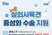 (포탈뉴스통신) 파주시는 실외에서 사육되는 반려견의 무분별한 번식을 예방하고 유실·유기 동물 발생을 줄이기 위해 녪년 실외사육견 중성화수술 지원사업’을 2월 9일부터 추진하고 있다. 해당 사업은 농촌지역 등에서 마당이나 울타리 안에서 기르는 5개월령 이상의 반려견을 대상으로 중성화 수술비를 지원하는 사업이다. 이를 통해 무분별한 번식으로 인한 유기견 발생을 사전에 차단하고, 개체 수를 효율적으로 관리하는 것을 목표로 한다. 지원 대상은 파주시 농촌지역 등 실외에서 반려 목적으로 개를 사육하는 시민이며, 신청하려면 거주지 관할 행정복지센터 또는 파주시농업기술센터 3층 동물관리과를 방문하면 된다. 대상자로 선정되면 지정 동물 병원과 사전 협의를 거쳐 중성화 수술을 진행하게 된다. 올해 사업 규모는 총 180마리로, 1마리당 최대 40만 원(암컷 기준)까지 지원하며 가구당 10마리 이내로 제한된다. 특히 기초생활수급자, 차상위계층, 65세 이상 고령자는 우선 지원 대상이다. 이광재 동물관리과장은 “실외사육견 중성화수술 지원사업은 유기견 증가를 예방하고 시민 불편을 줄이는 데 크게 기여할 것”이라며 “동물